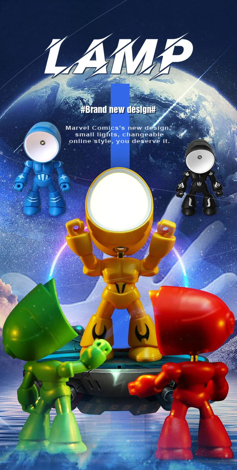 Mini Night Light LED Cartoon Cute Hero Police Desk Lamp Desktop Ornament Bedside Bedroom Table Lights Children Boy Holiday Gifts
